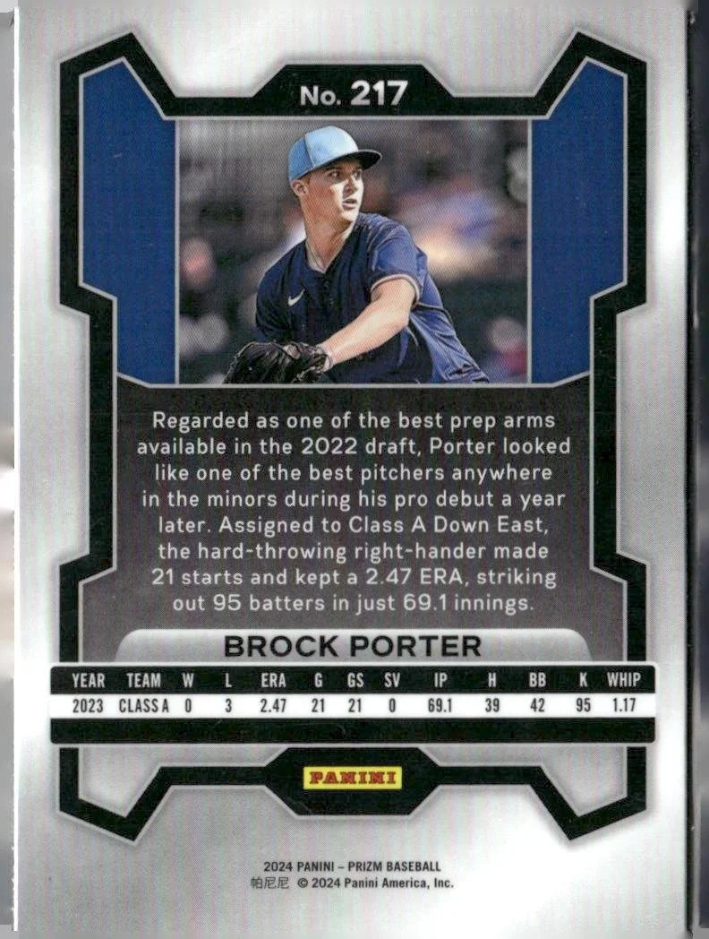 This is a nice example of a 2024 Panini Prizm #217 Brock Porter