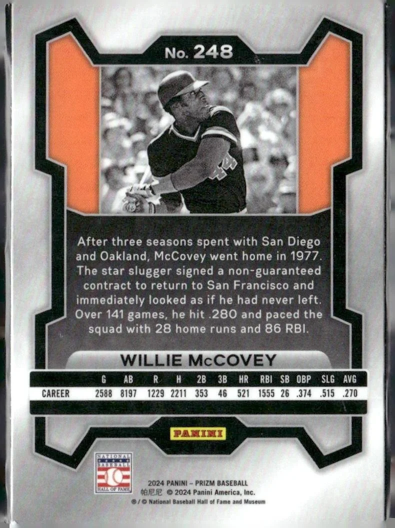 This is a nice example of a 2024 Panini Prizm #248 Willie McCovey