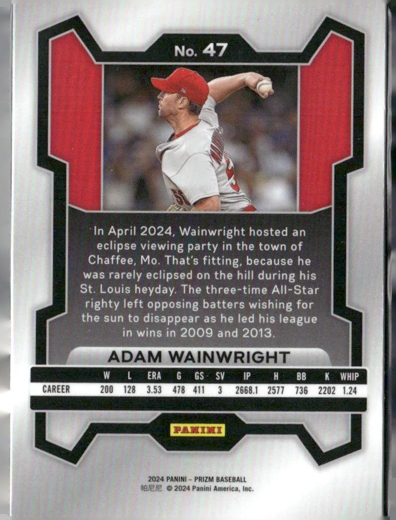 This is a nice example of a 2024 Panini Prizm #47 Adam Wainwright