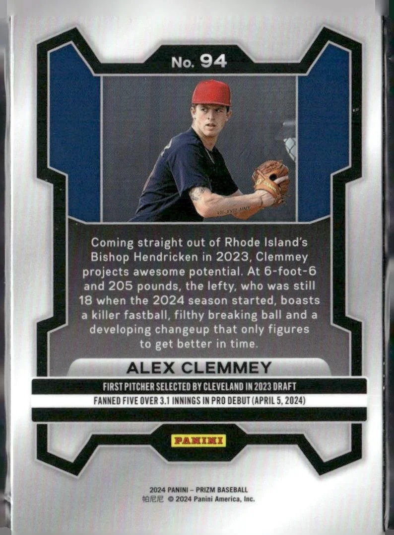This is a nice example of a 2024 Panini Prizm #94 Alex Clemmey