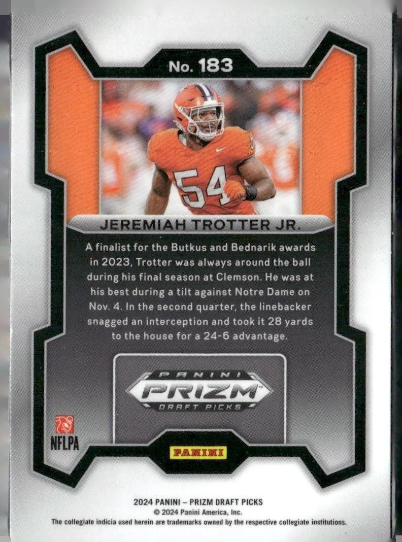 This is a nice example of a 2024 Panini Prizm Draft Picks #183 Jeremiah Trotter Jr.