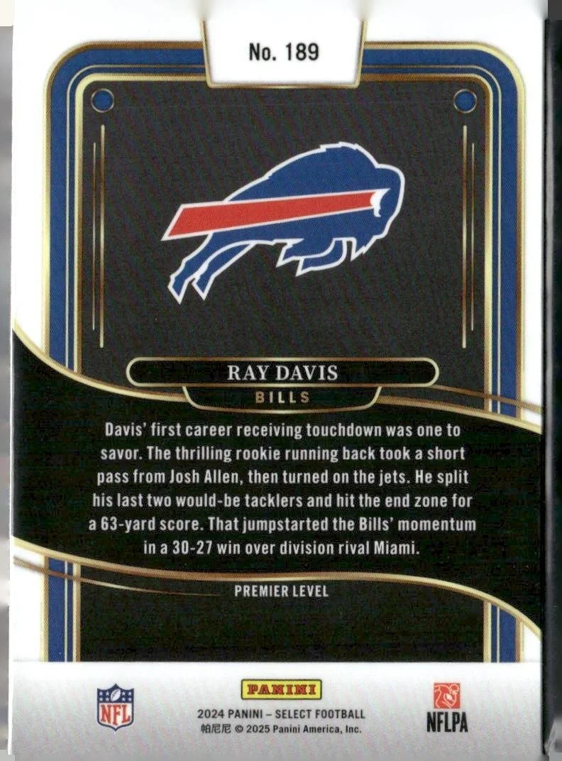 This is a nice example of a 2024 Panini Select #189 Ray Davis