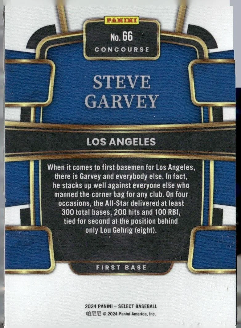 This is a nice example of a 2024 Panini Select #66 Steve Garvey
