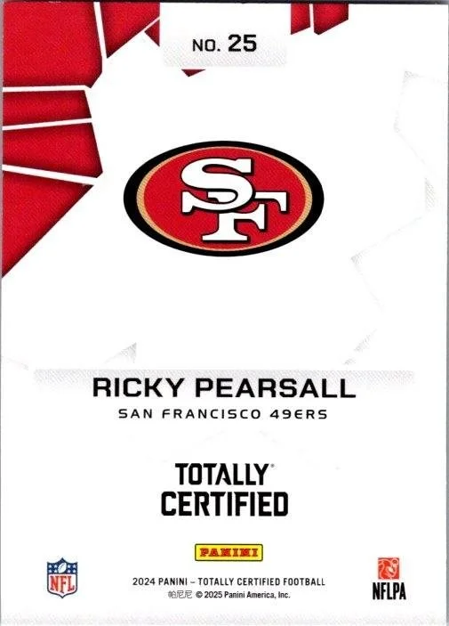This is a nice example of a 2024 Panini Totally Certified #25 Ricky Pearsall Intriguing Players