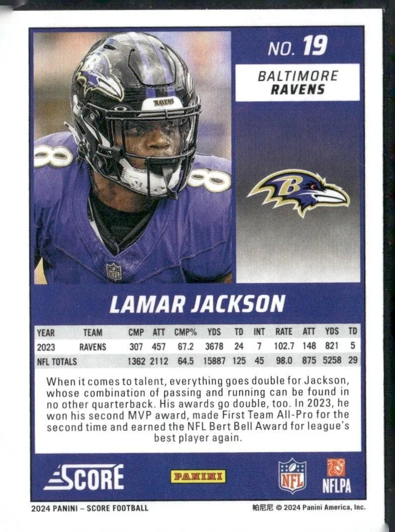 This is a nice example of a 2024 Score #19 Lamar Jackson