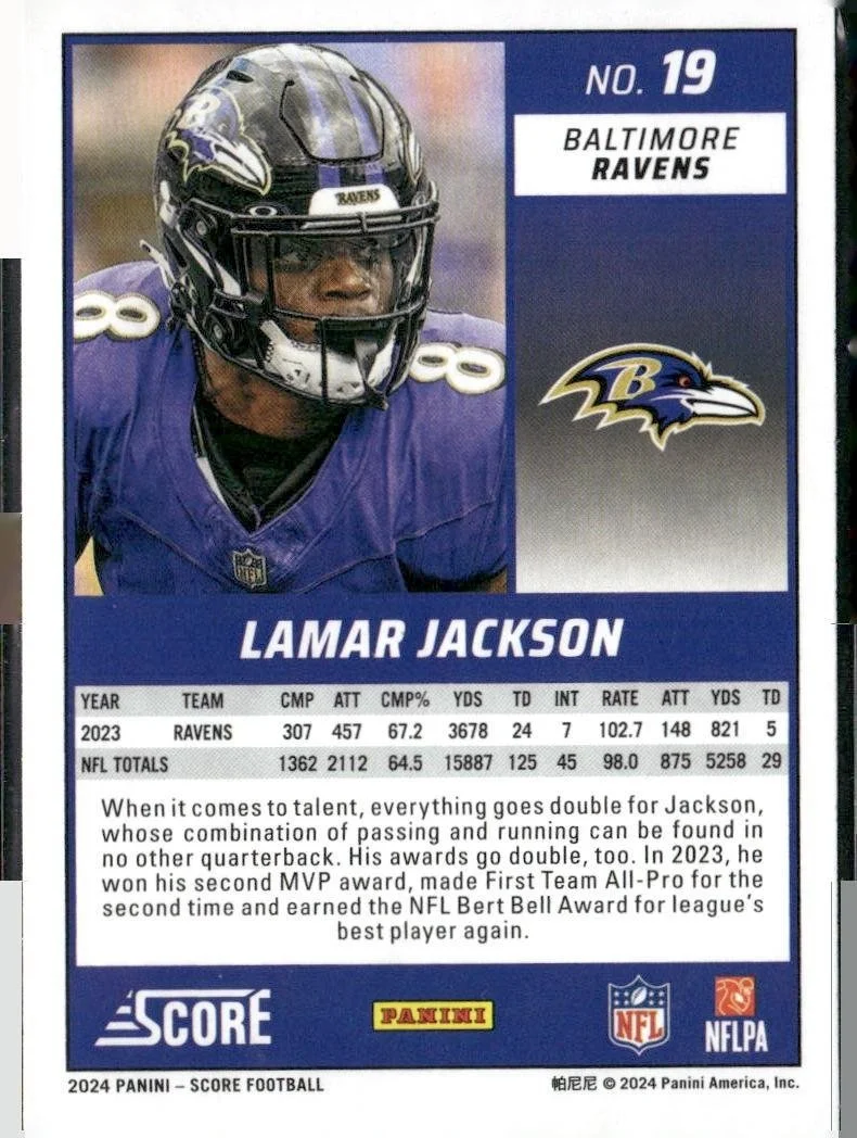 This is a nice example of a 2024 Score #19 Lamar Jackson
