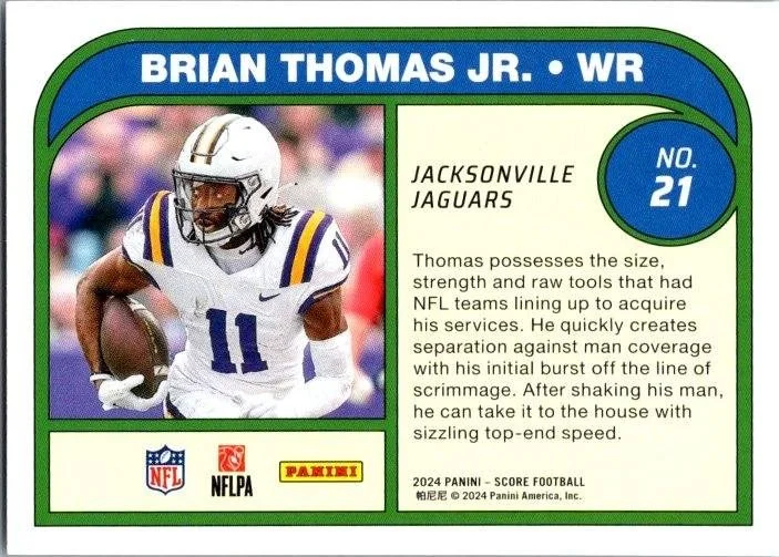 This is a nice example of a 2024 Score #21 Brian Thomas Jr. Protential