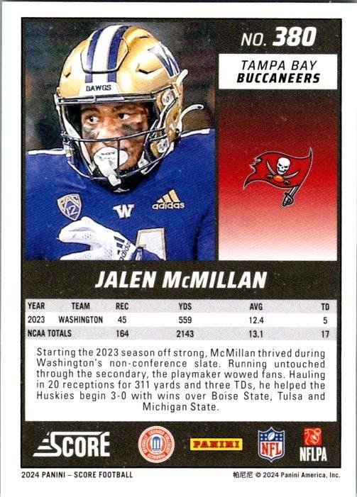 This is a nice example of a 2024 Score #380 Jalen McMillan Green