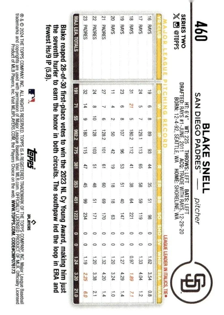 This is a nice example of a 2024 Topps #460 Blake Snell