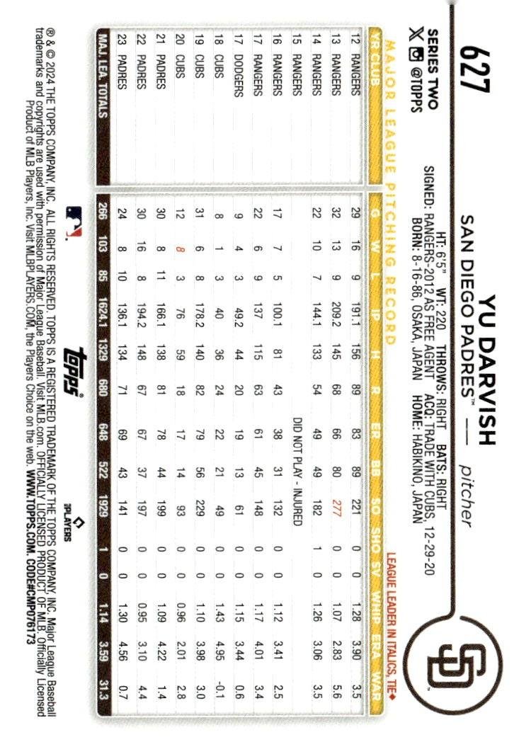 This is a nice example of a 2024 Topps #627 Yu Darvish