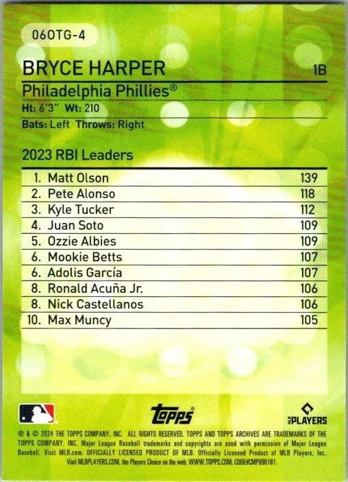 This is a nice example of a 2024 Topps Archives #06OTG-4 Bryce Harper 2006 Topps Baseball Own the Game