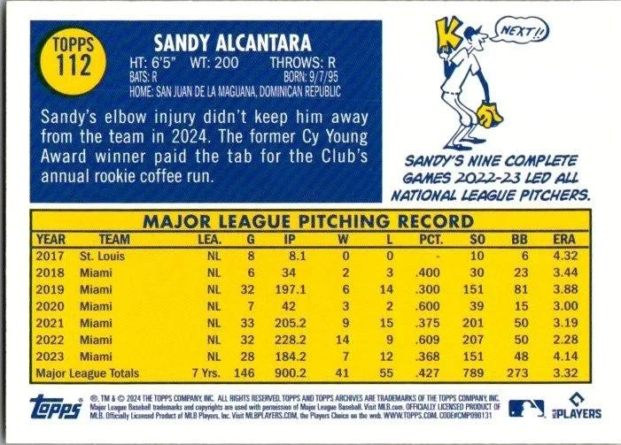 This is a nice example of a 2024 Topps Archives #112 Sandy Alcantara Yellow Foilboard