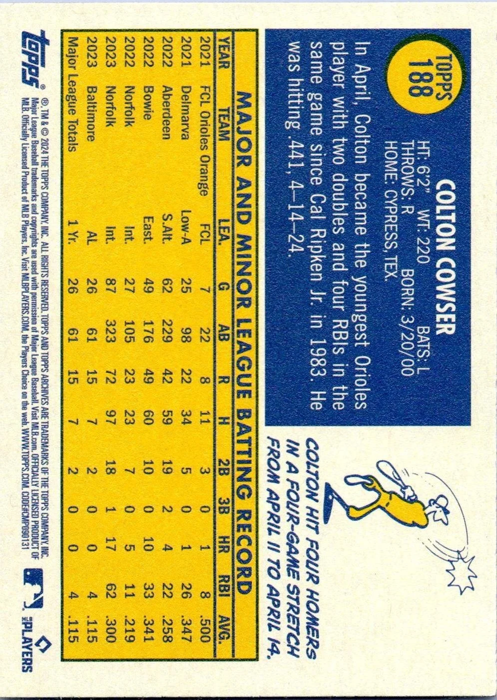 This is a nice example of a 2024 Topps Archives #188 Colton Cowser