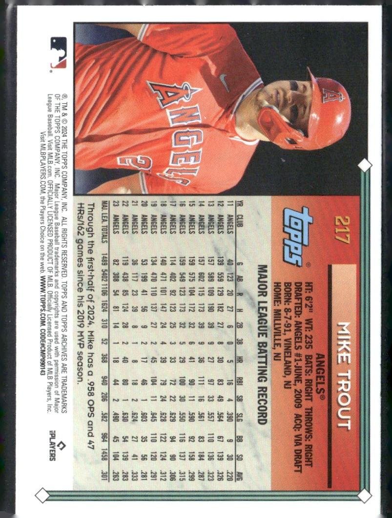 This is a nice example of a 2024 Topps Archives #217 Mike Trout
