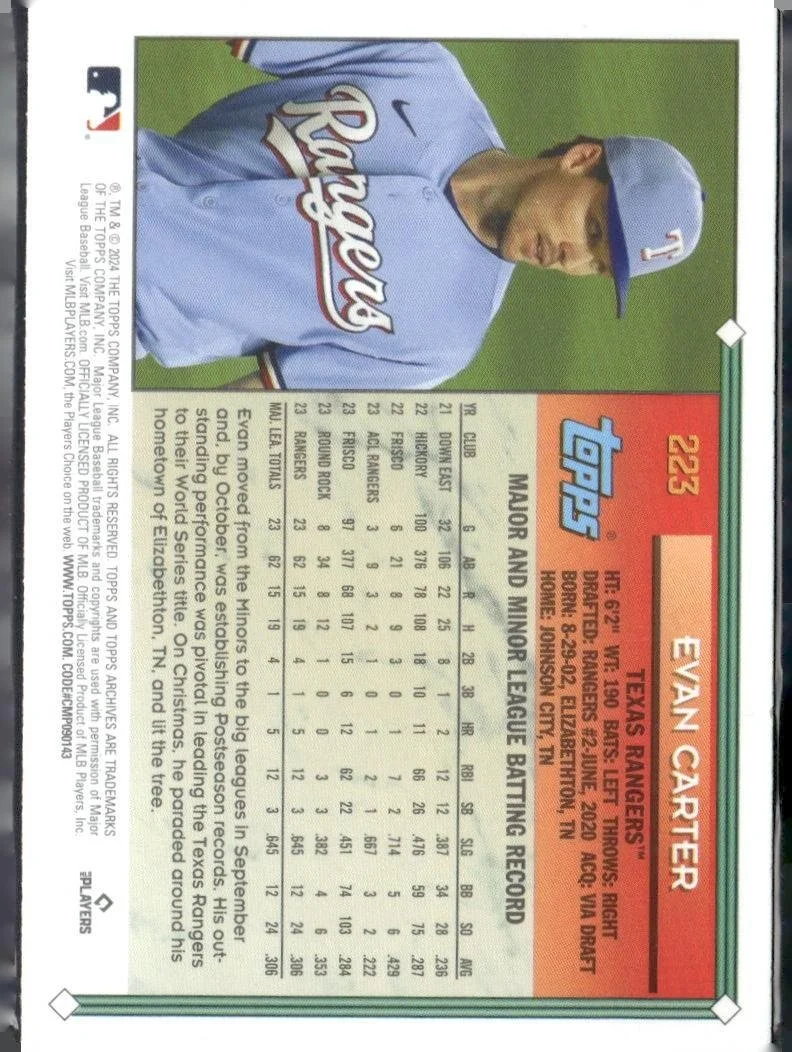 In 2024 Evan Carter played for the Texas Rangers.