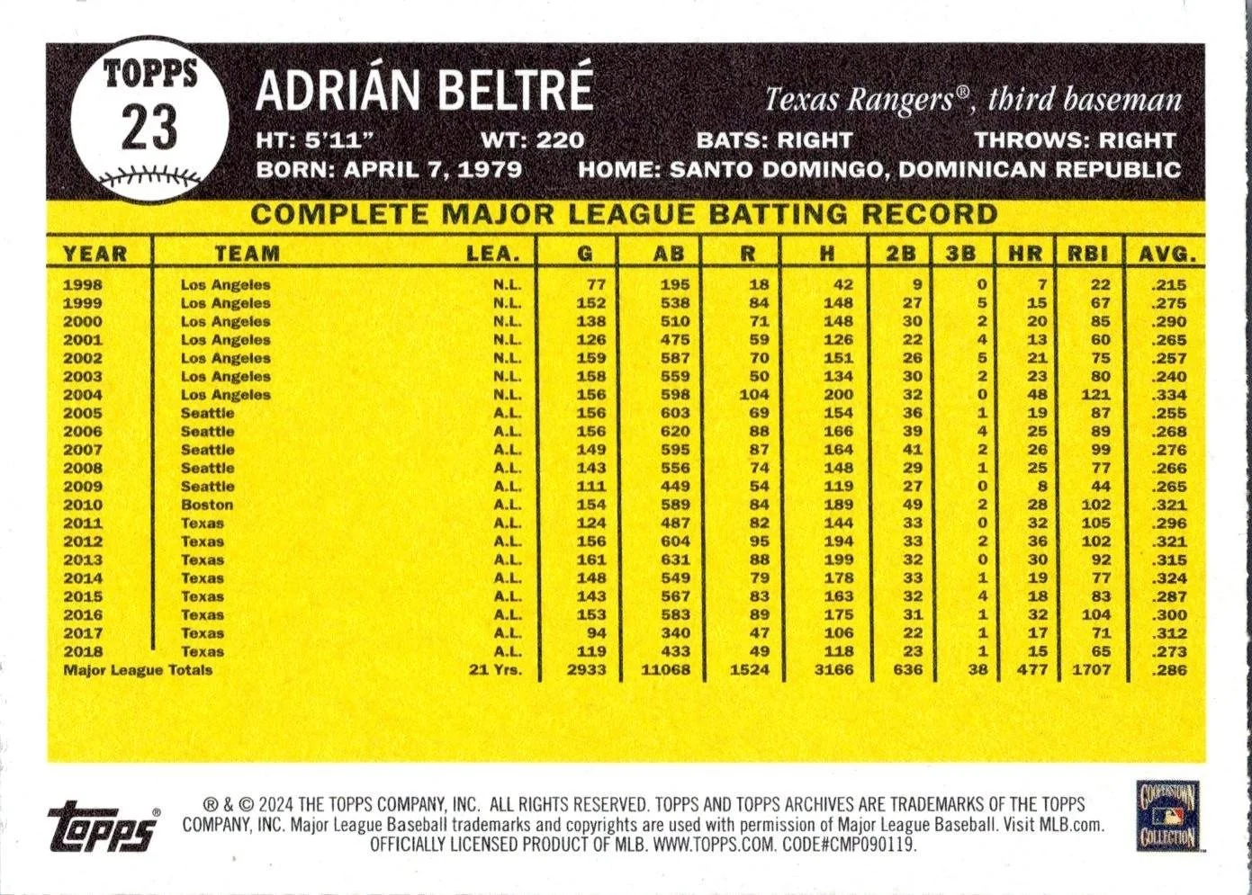 This is a nice example of a 2024 Topps Archives #23 Adrián Beltré