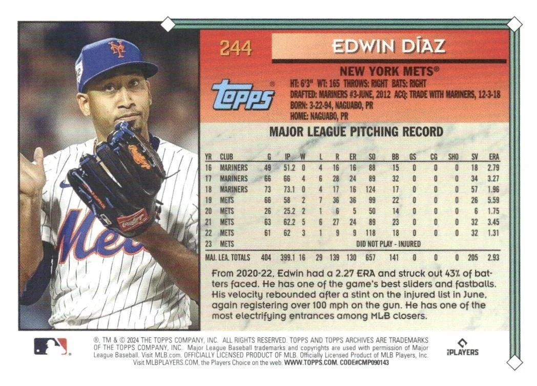 This is a nice example of a 2024 Topps Archives #244 Edwin Díaz