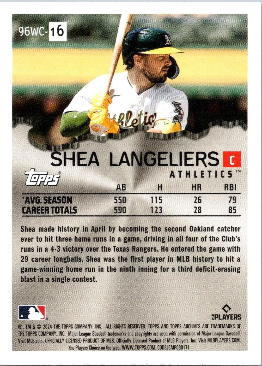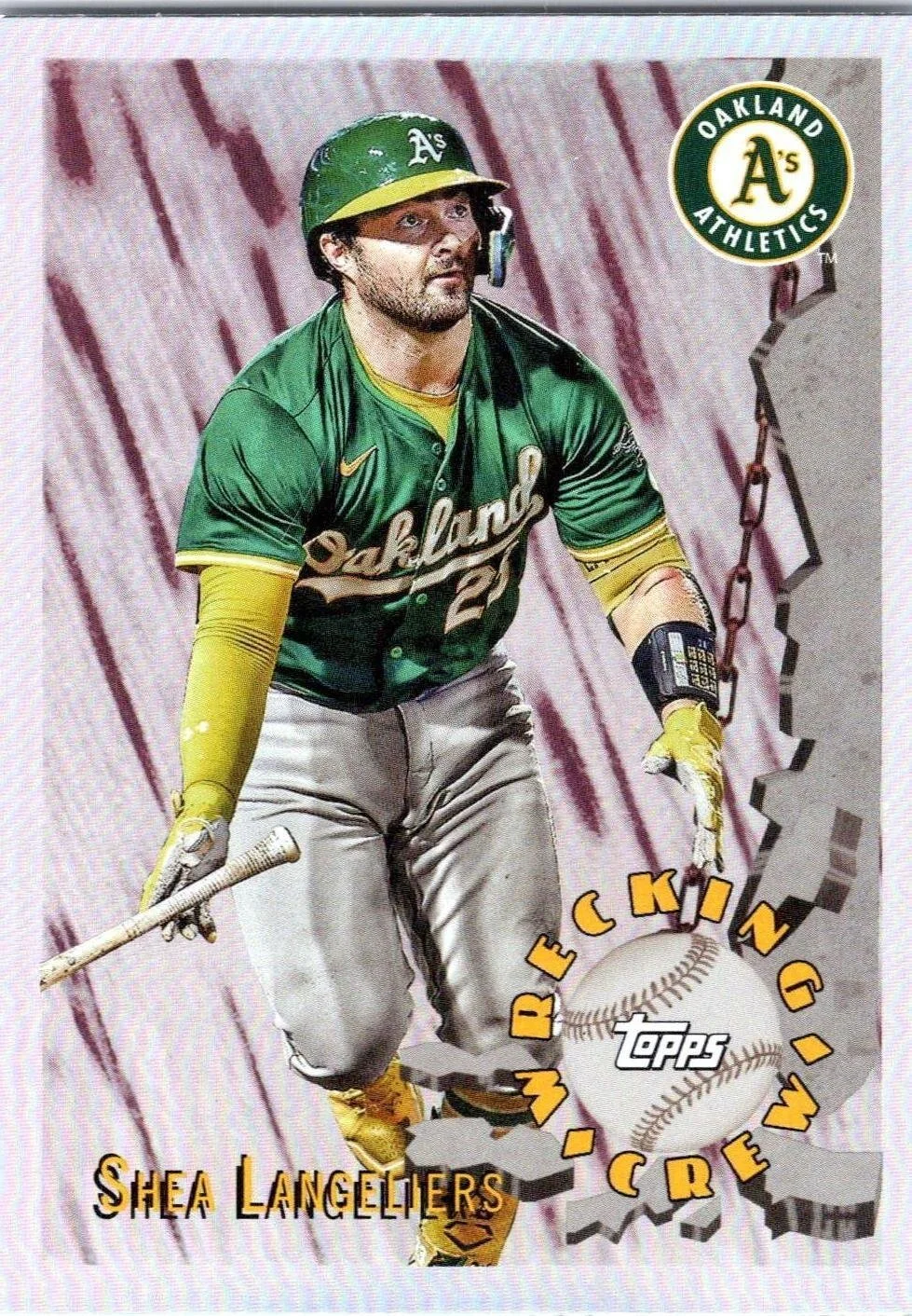 This is a nice example of a 2024 Topps Archives #96WC-16 Shea Langeliers 1996 Topps Baseball Wrecking Crew