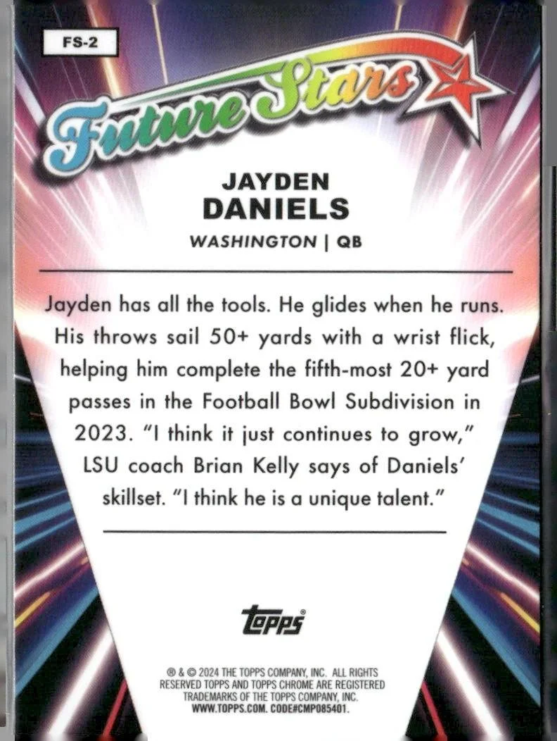 This is a nice example of a 2024 Topps Chrome #FS-2 Jayden Daniels Future Stars