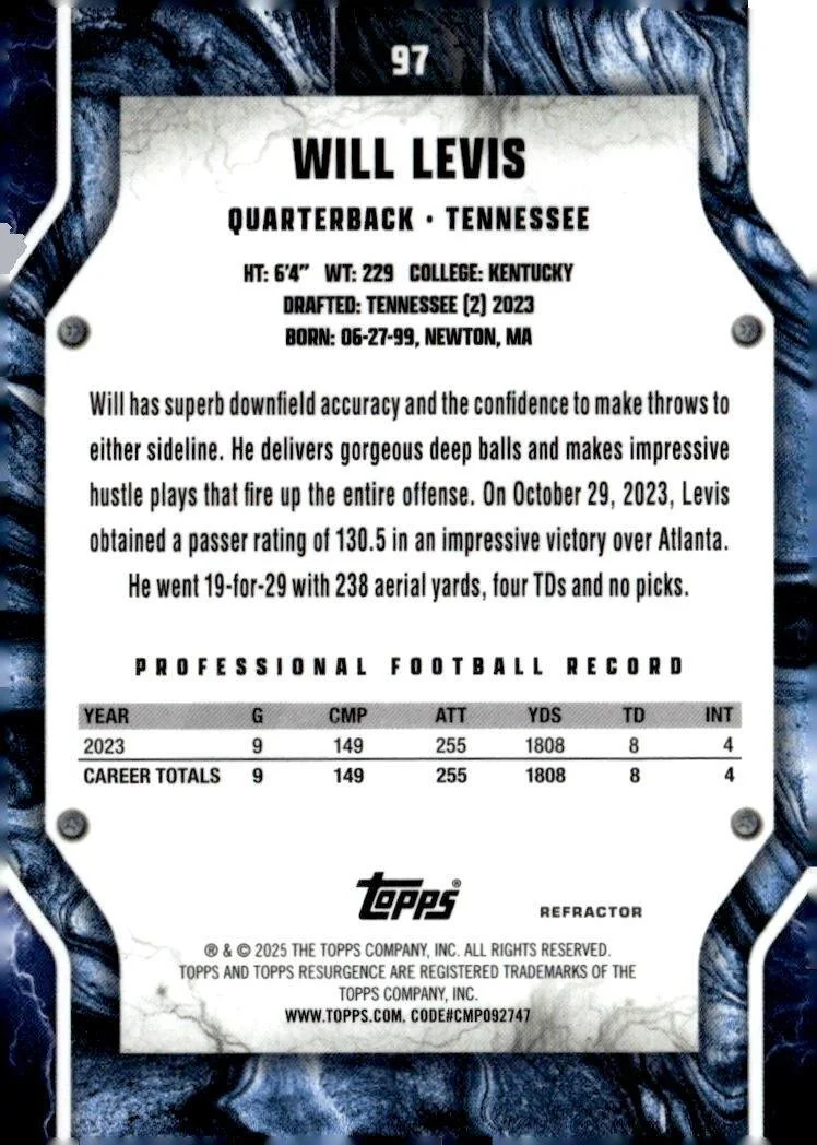 This is a nice example of a 2024 Topps Resurgence #97 Will Levis