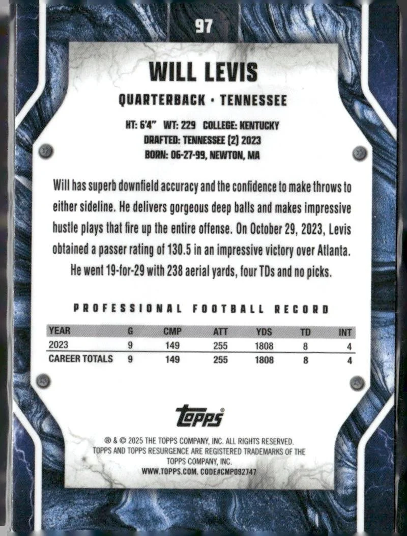 This is a nice example of a 2024 Topps Resurgence #97 Will Levis