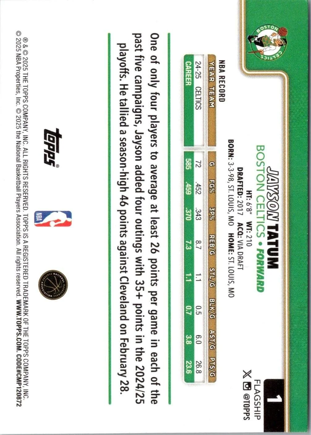 This is a nice example of a 2025-26 Topps #1 Jayson Tatum
