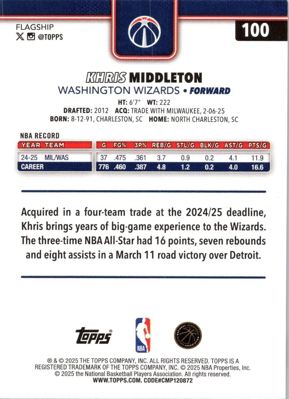 This is a nice example of a 2025-26 Topps #100 Khris Middleton