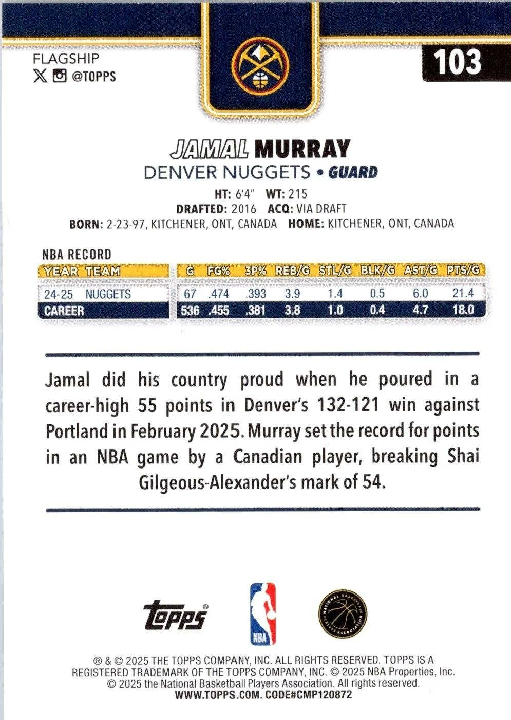 This is a nice example of a 2025-26 Topps #103 Jamal Murray