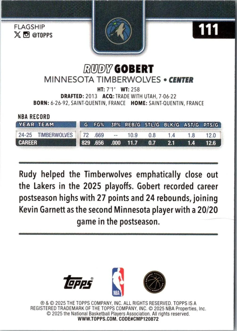 This is a nice example of a 2025-26 Topps #111 Rudy Gobert