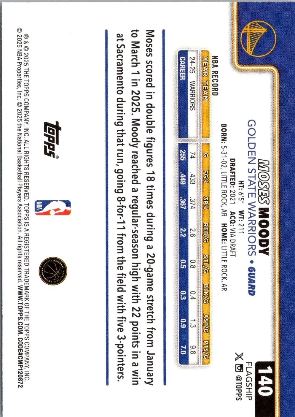 This is a nice example of a 2025-26 Topps #140 Moses Moody