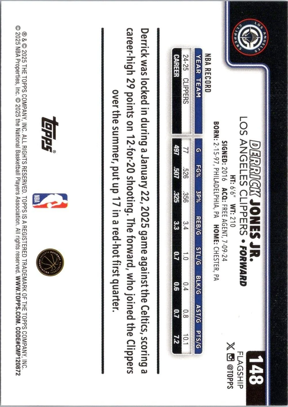 In 2025 Derrick Jones Jr. played for the Los Angeles Clippers.