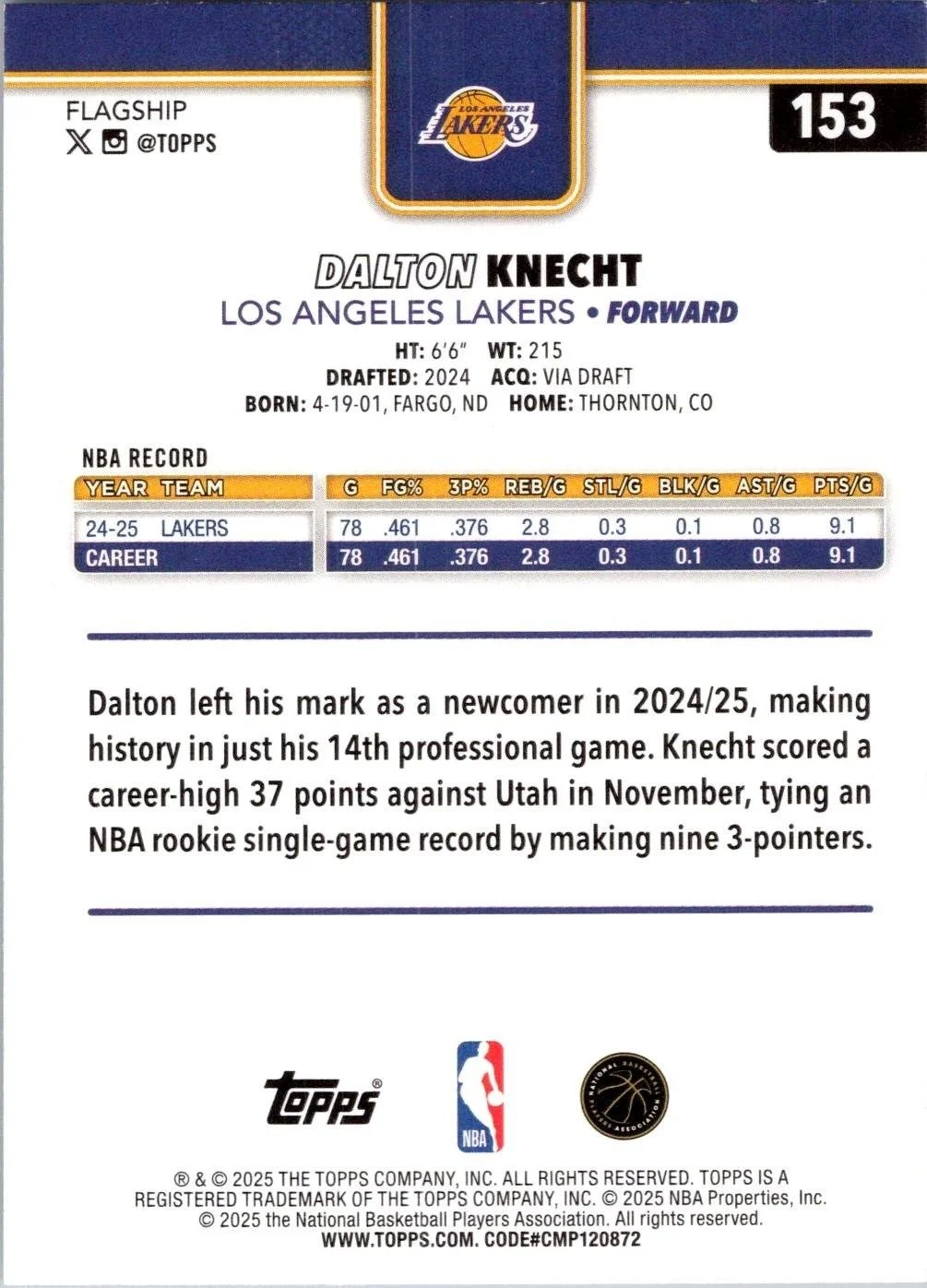 In 2025 Dalton Knecht played for the Los Angeles Lakers.
