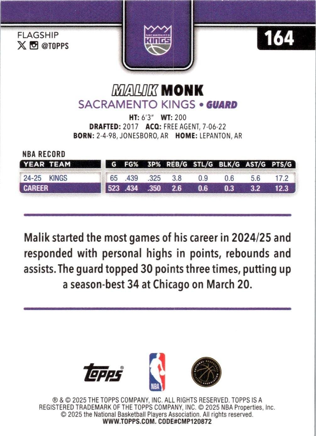 This is a nice example of a 2025-26 Topps #164 Malik Monk