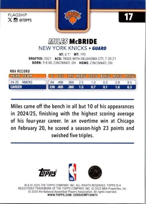 This is a nice example of a 2025-26 Topps #17 Miles McBride