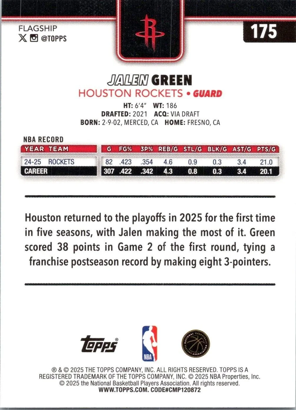 This is a nice example of a 2025-26 Topps #175 Jalen Green