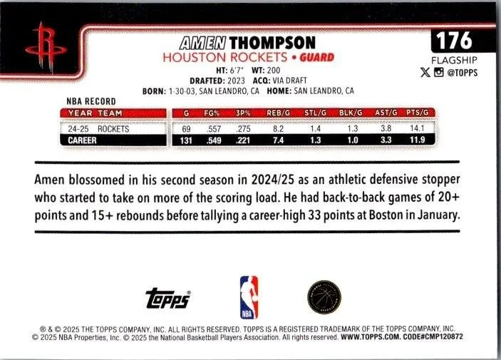 This is a nice example of a 2025-26 Topps #176 Amen Thompson