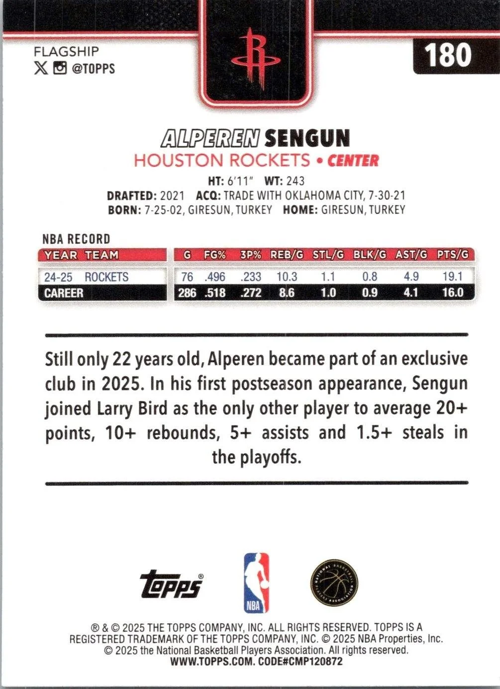 This is a nice example of a 2025-26 Topps #180 Alperen Sengun