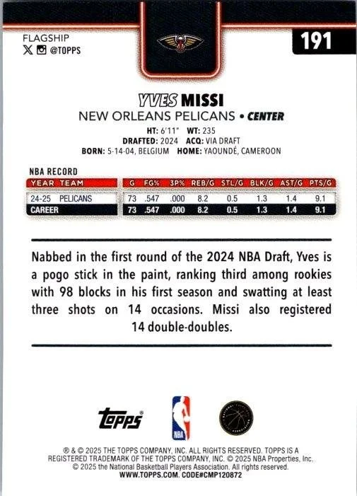 This is a nice example of a 2025-26 Topps #191 Yves Missi