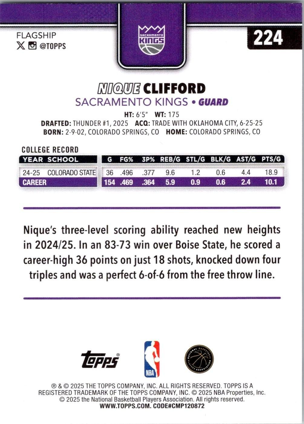 This is a nice example of a 2025-26 Topps #224 Nique Clifford