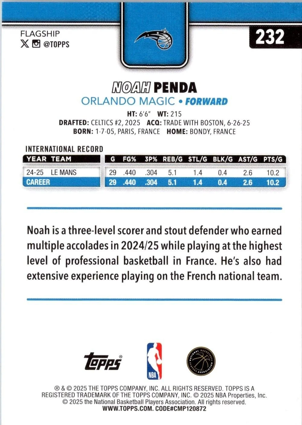 This is a nice example of a 2025-26 Topps #232 Noah Penda