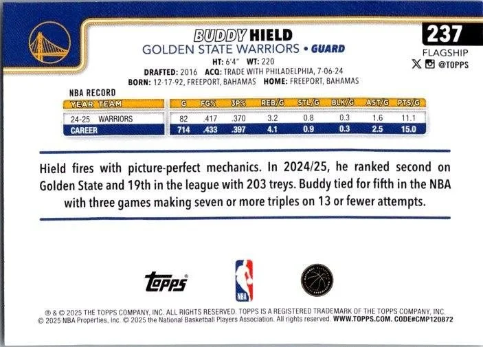 In 2025 Buddy Hield played for the Golden State Warriors.