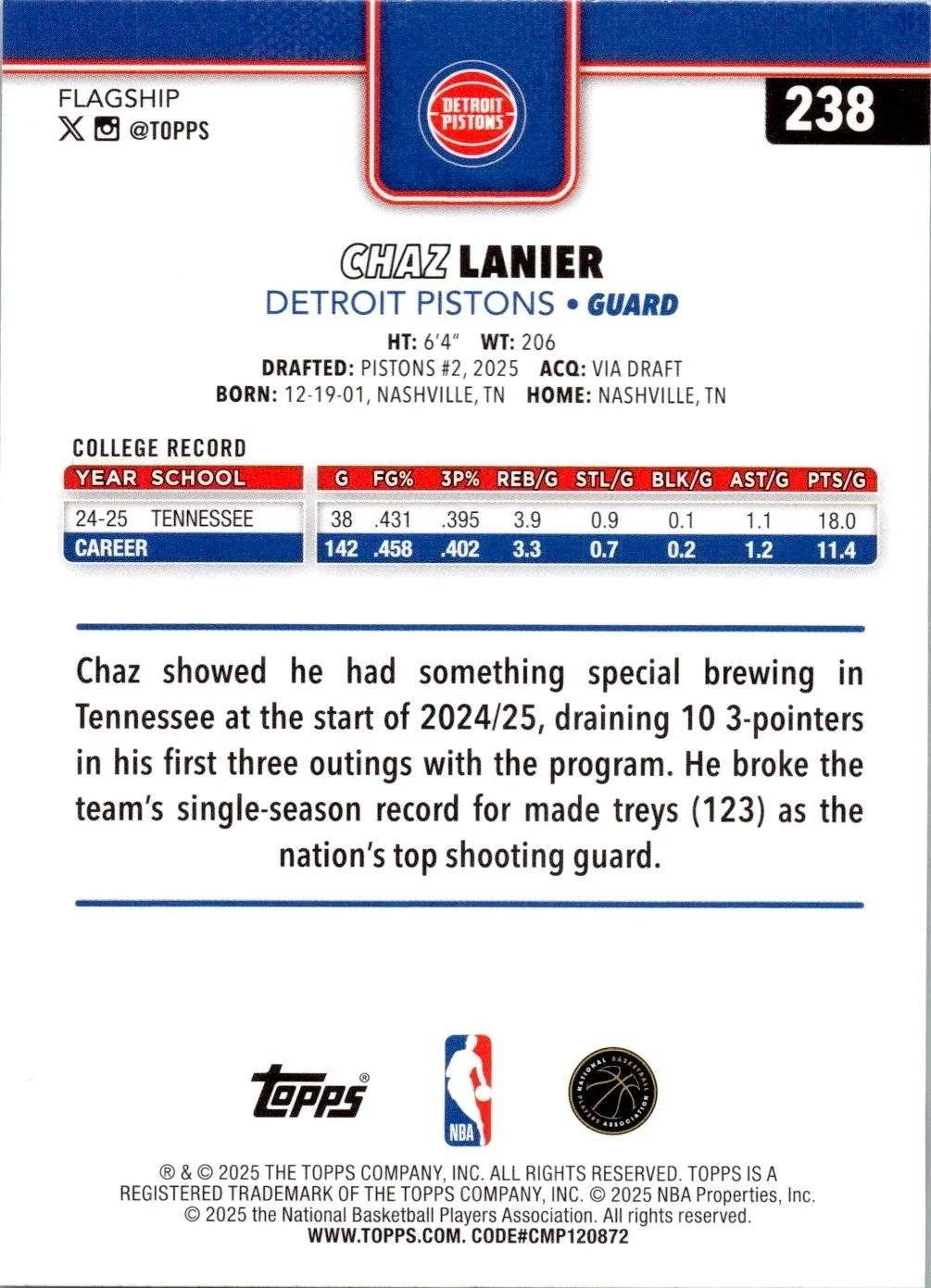 This is a nice example of a 2025-26 Topps #238 Chaz Lanier
