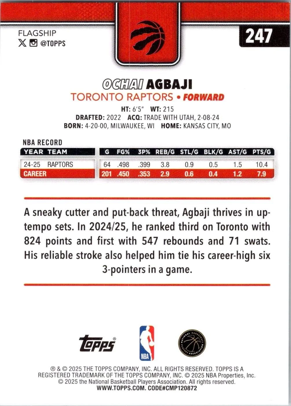 This is a nice example of a 2025-26 Topps #247 Ochai Agbaji