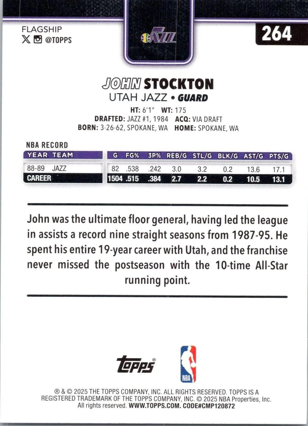 This is a nice example of a 2025-26 Topps #264 John Stockton