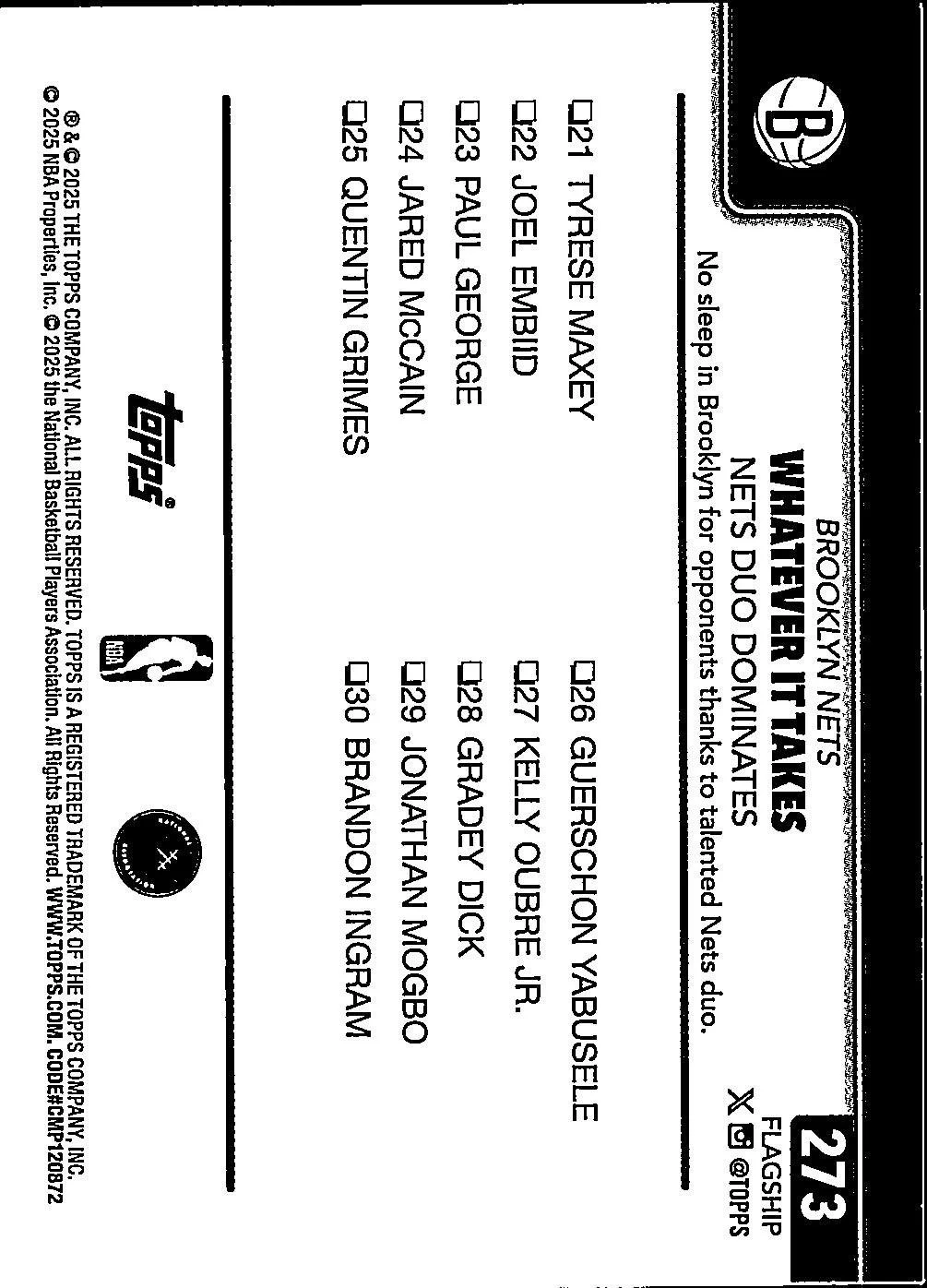 This is a nice example of a 2025-26 Topps #273 Whatever It Takes: Nets Duo Dominates