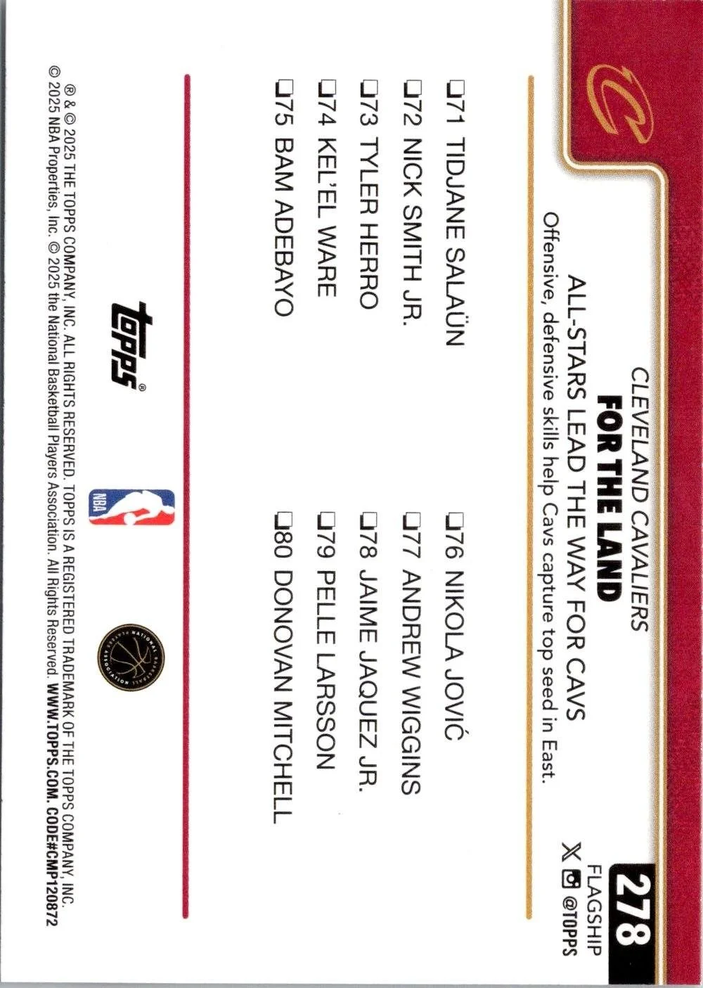 This is a nice example of a 2025-26 Topps #278 For The Land: All-Stars Lead The Way For Cavs