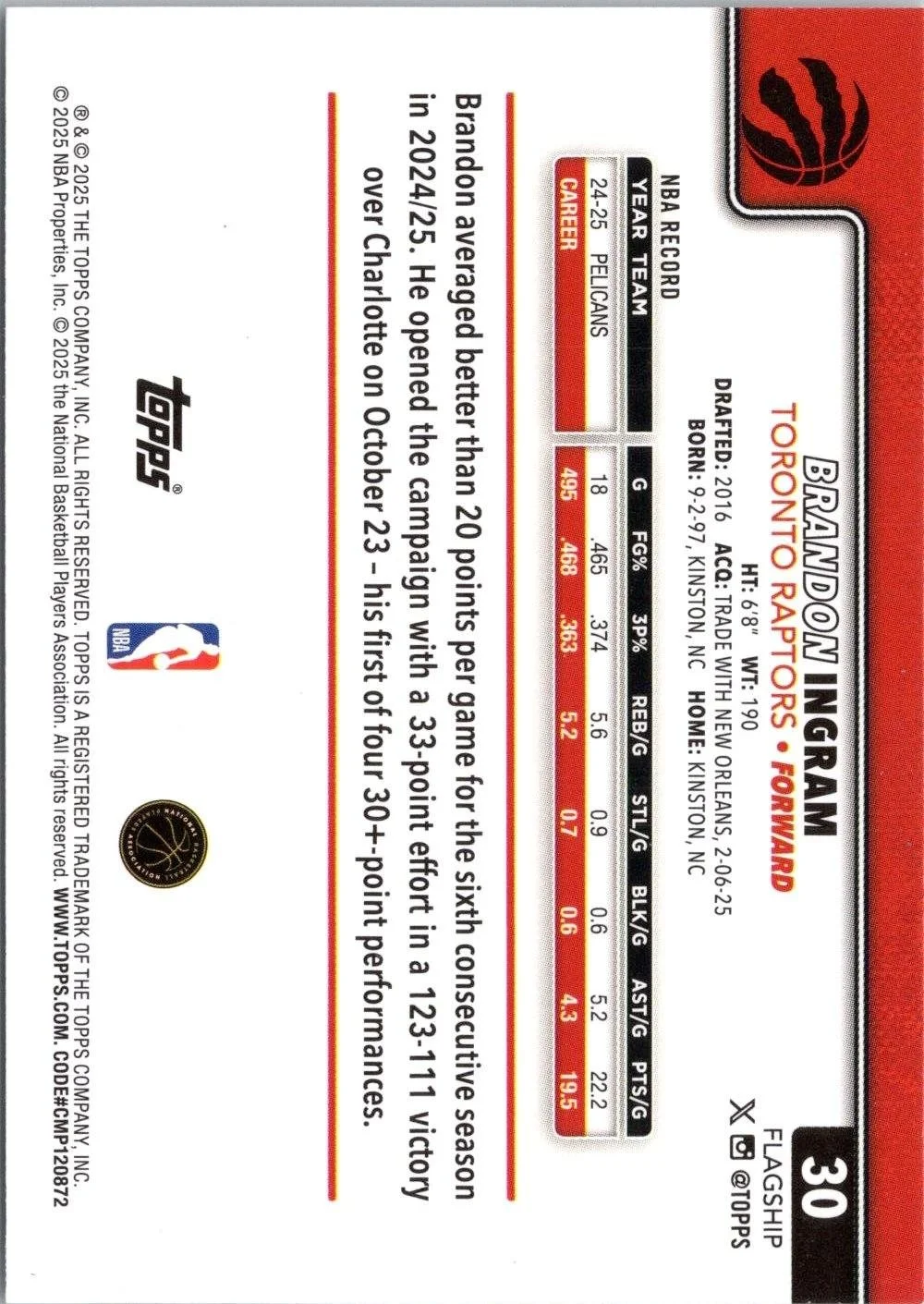 This is a nice example of a 2025-26 Topps #30 Brandon Ingram