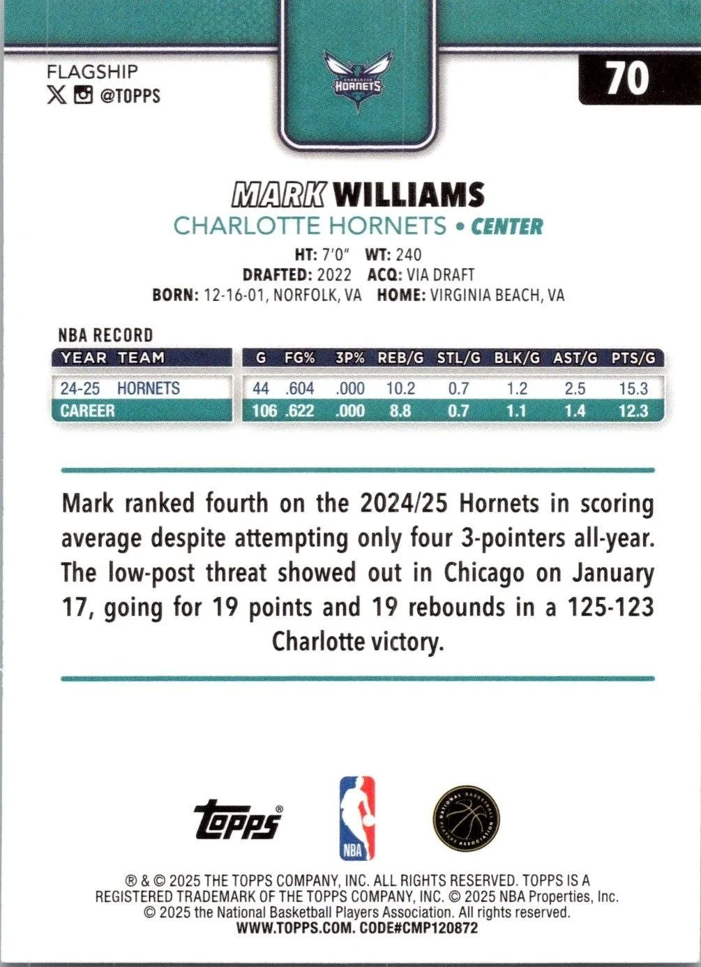 This is a nice example of a 2025-26 Topps #70 Mark Williams