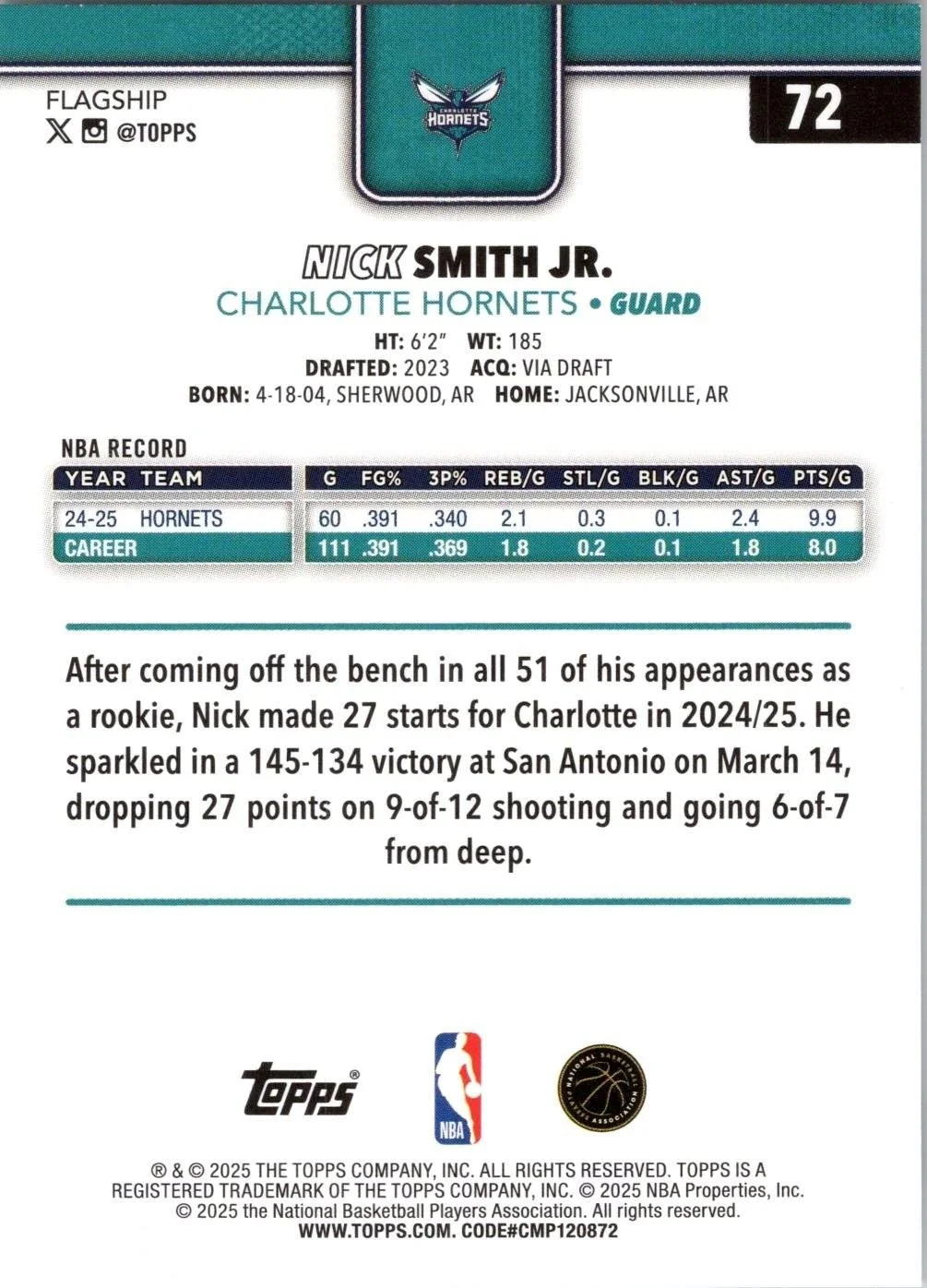 This is a nice example of a 2025-26 Topps #72 Nick Smith Jr.