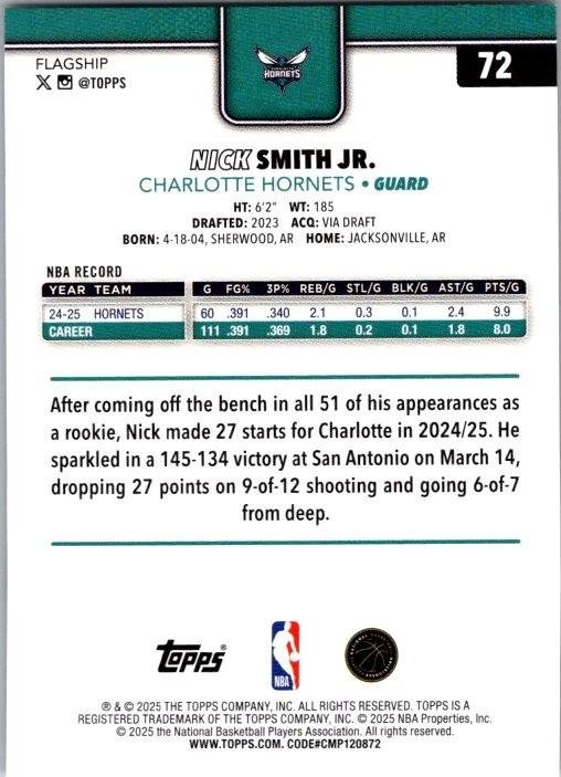 This is a nice example of a 2025-26 Topps #72 Nick Smith Jr.